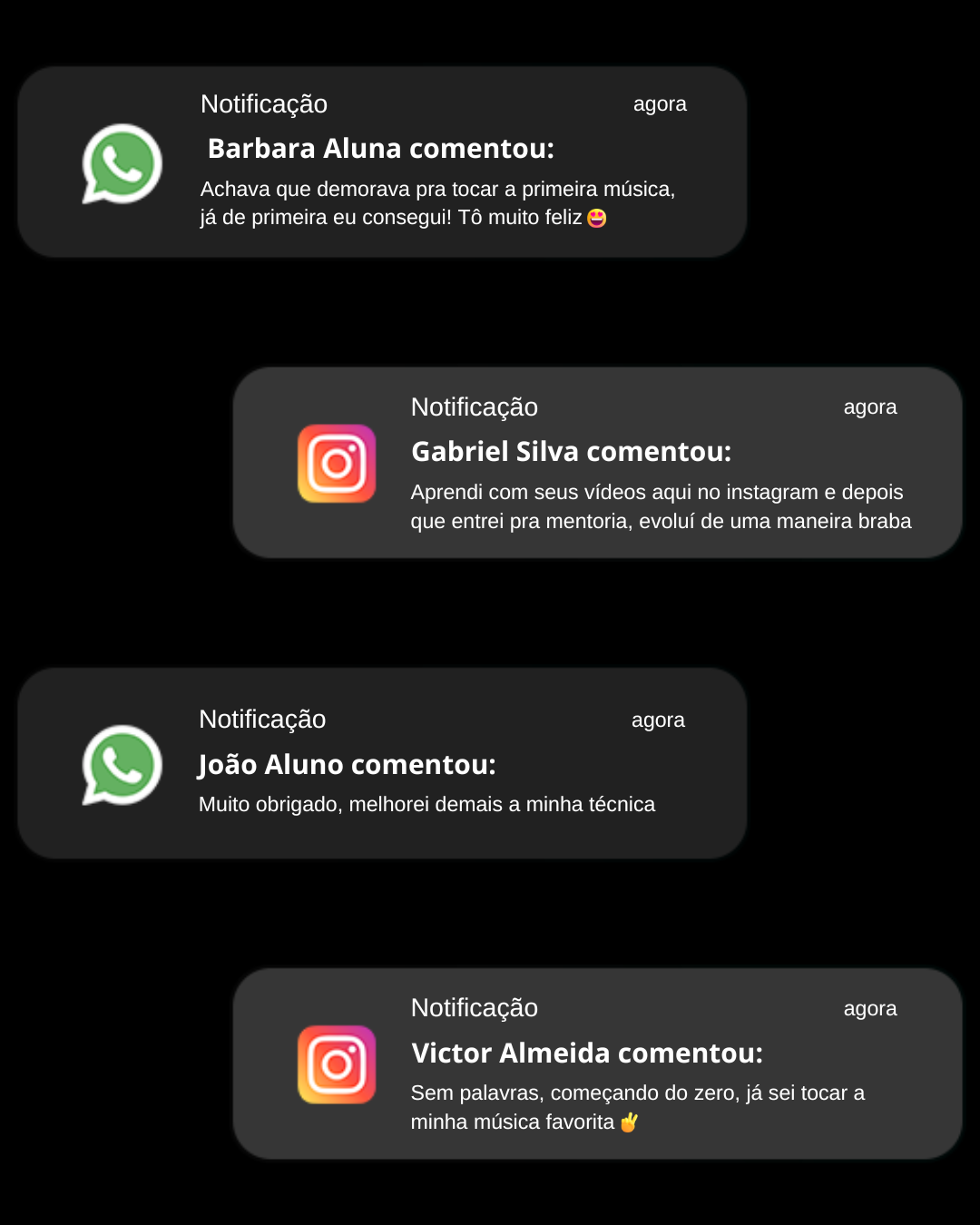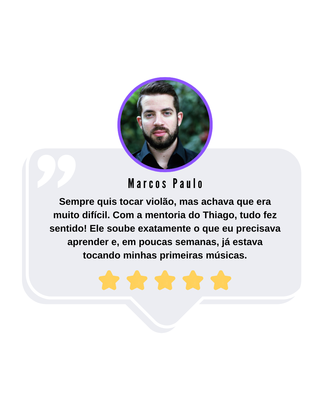Ao longo dos anos, tive a oportunidade de ajudar muitos alunos a evoluírem no violão de forma estruturada e sem complicação. Minha mentoria é baseada em um método testado na prática.