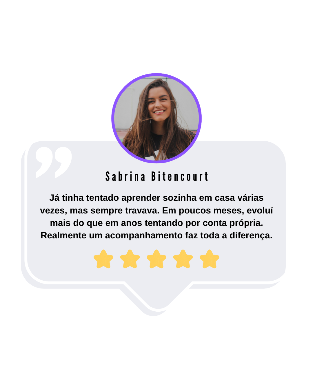 Aqui, cada aula é feita sob medida para o seu nível, suas dificuldades e seus objetivos. Você recebe um direcionamento claro, evita erros que atrasam seu progresso e aprende de forma leve e sem frustração.